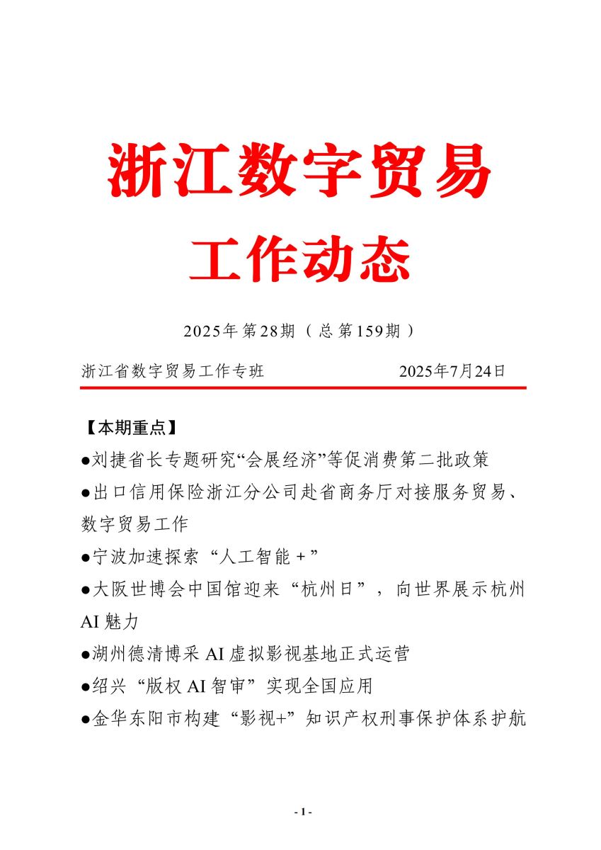 浙江数字贸易简报(第一百五十九期) 时间: 2025/7/28 8:57:24 浏览量: |