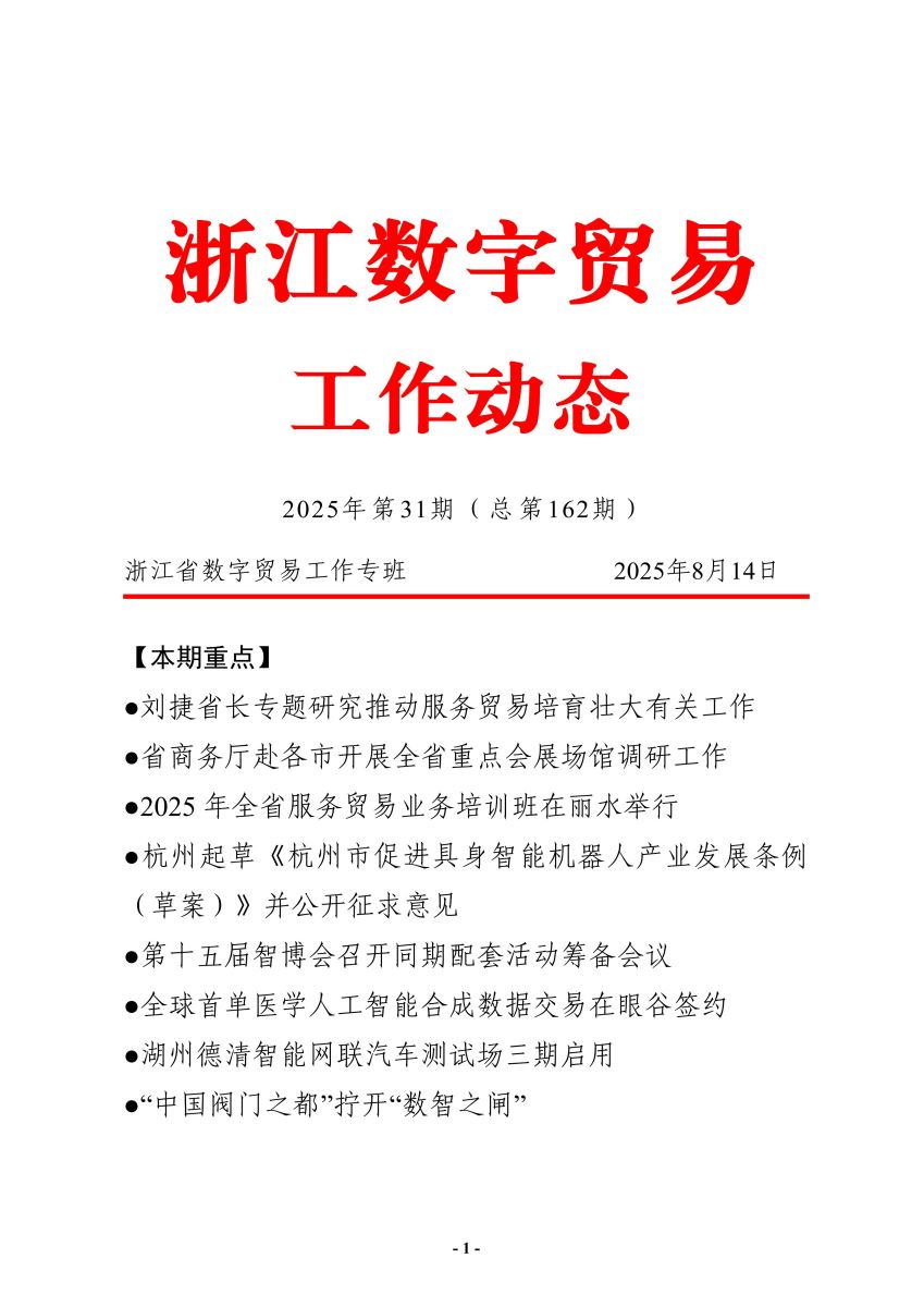 浙江数字贸易简报(第一百六十二期) 时间: 2025/8/15 16:31:19 浏览量: |