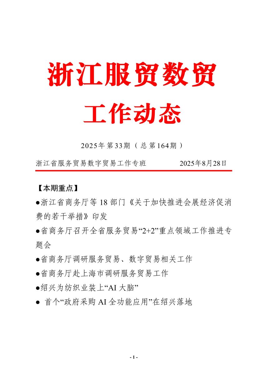 浙江数字贸易简报(第一百六十四期) 时间: 2025/8/29 16:38:27 浏览量: |