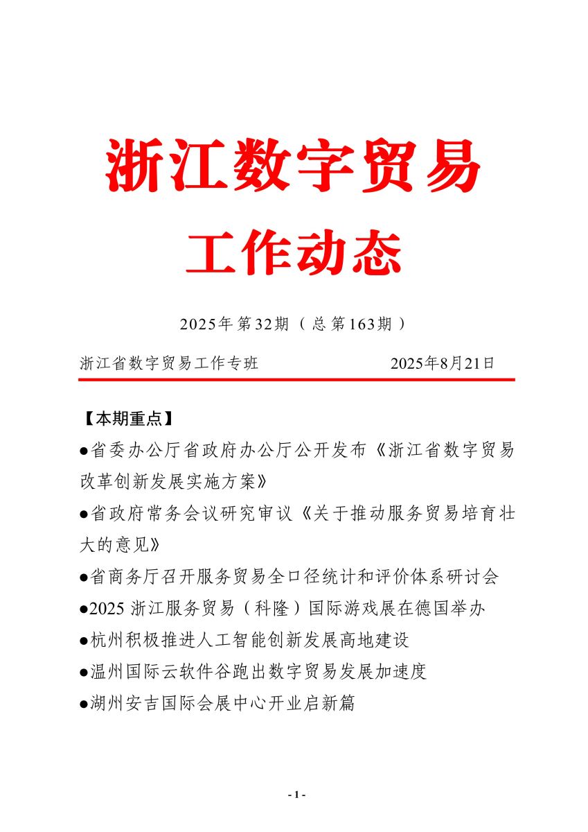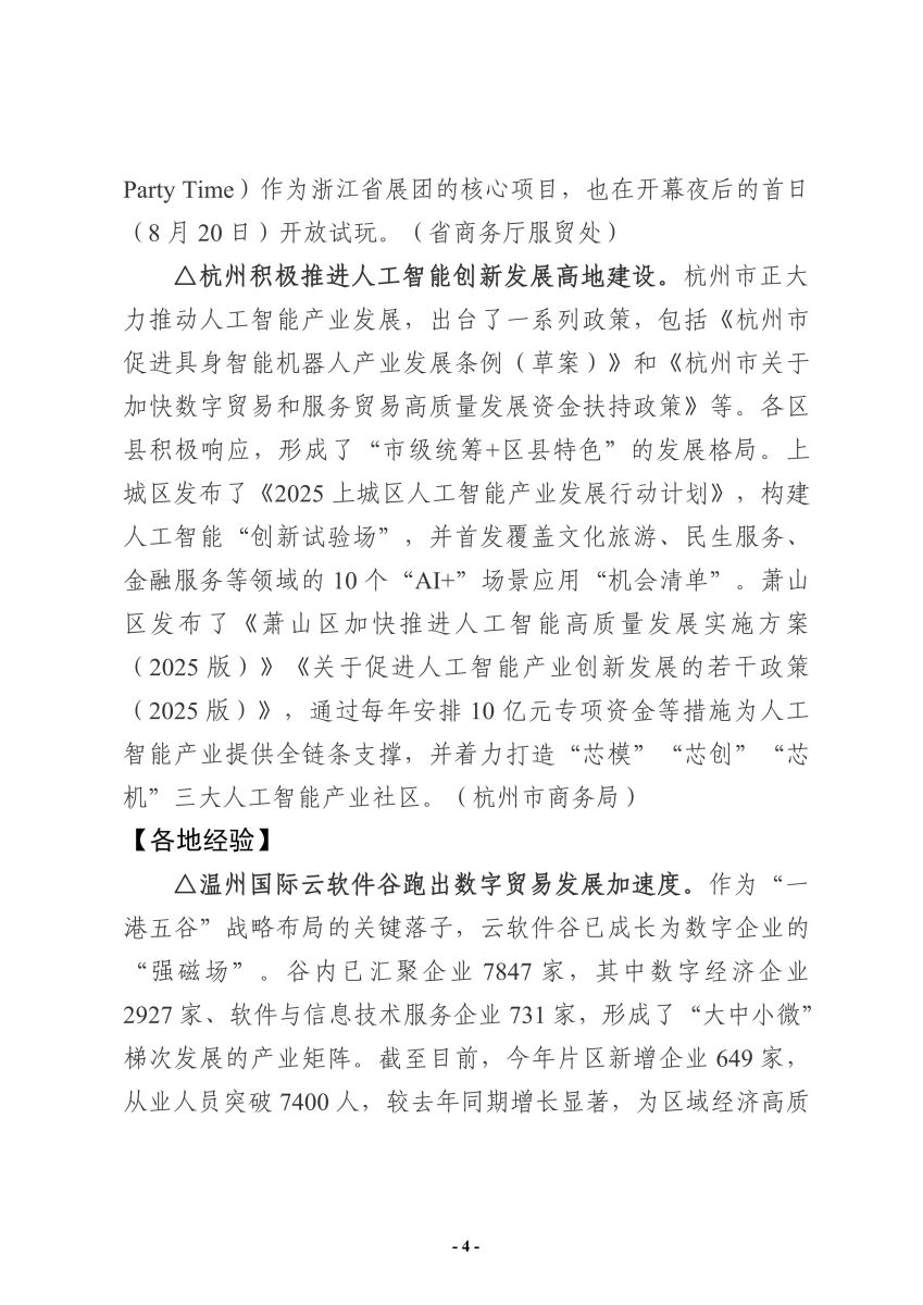 浙江数字贸易简报(第一百六十三期) 时间: 2025/8/22 16:35:26 浏览量: |