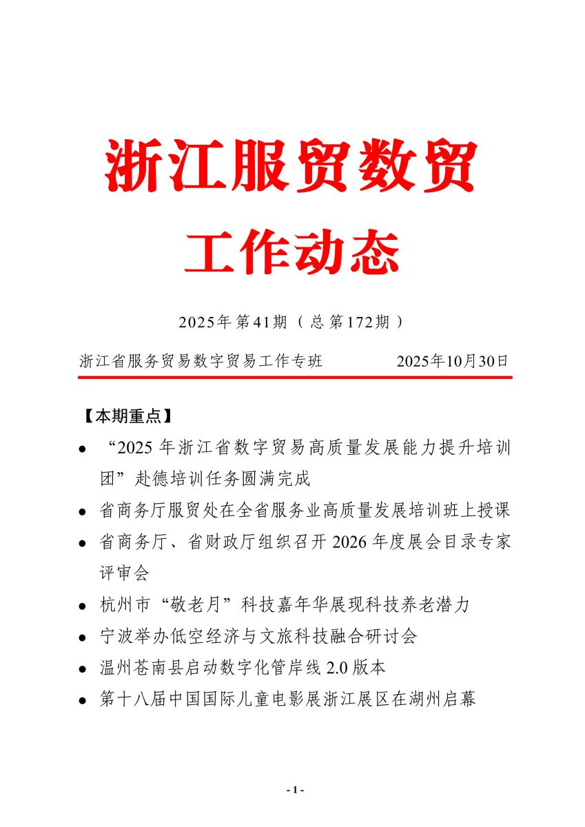 浙江数字贸易简报(第一百七十二期) 时间: 2025/11/3 17:00:04 浏览量: |