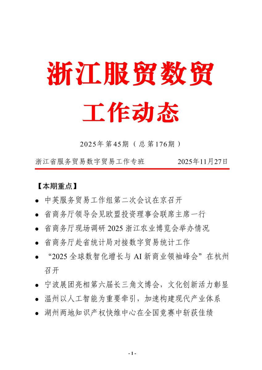 浙江数字贸易简报(第一百七十六期) 时间: 2025/11/28 15:55:14 浏览量: |