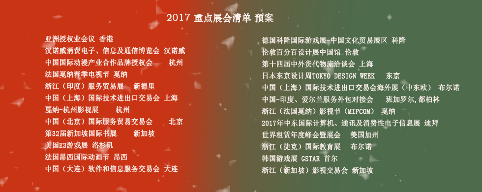 2017年重点会展预案 时间: 2016/12/13 17:13:49 浏览量: |