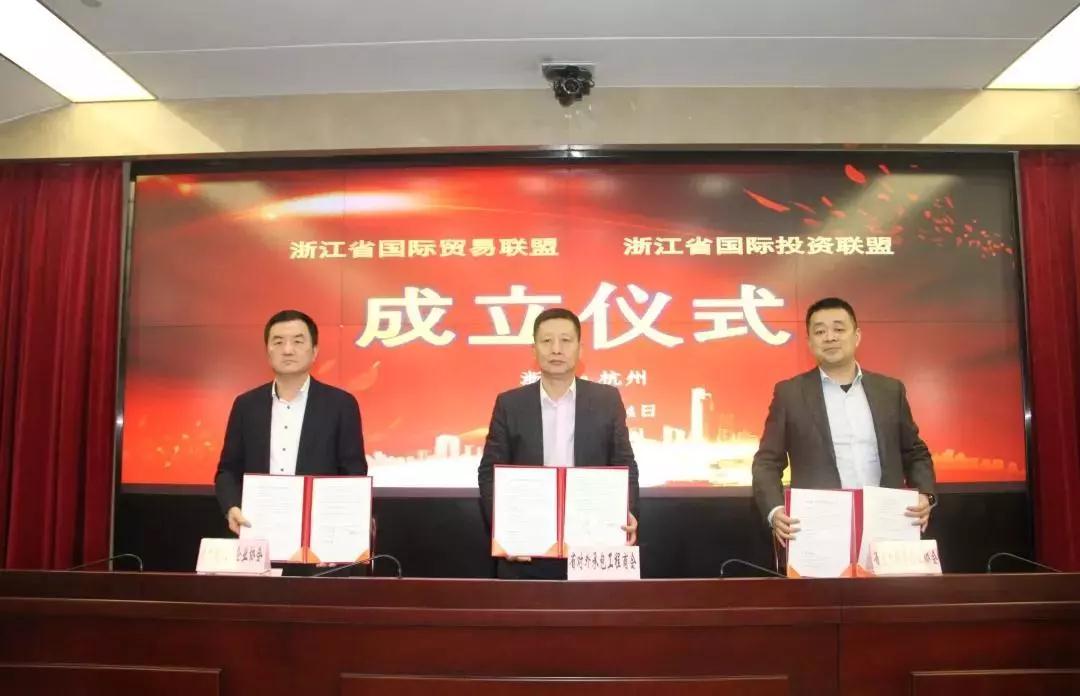 3月4日,由省服务贸易协会、省国际货代物流协会、省外经贸企业协会、省境外投资企业协会、省外商投资企业协会、省对外承包工程商会共同发起、自愿组成的浙江省国际贸易联盟和浙江省国际投资联盟成立仪式隆重举行。