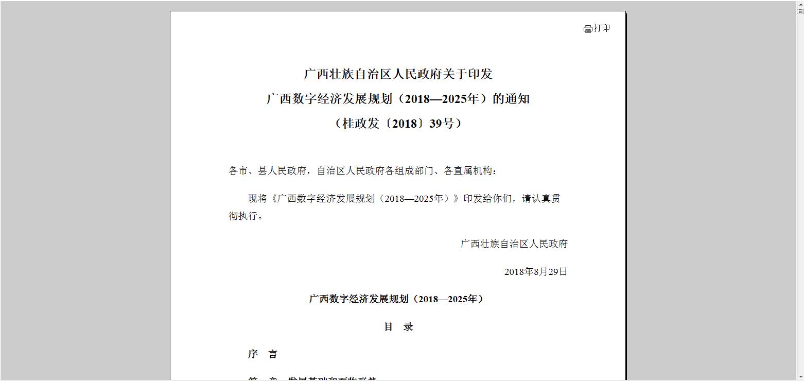 关于印发广西数字经济发展规划(2018—2025年)的通知 时间: 2018/8/30 9:52:37 |