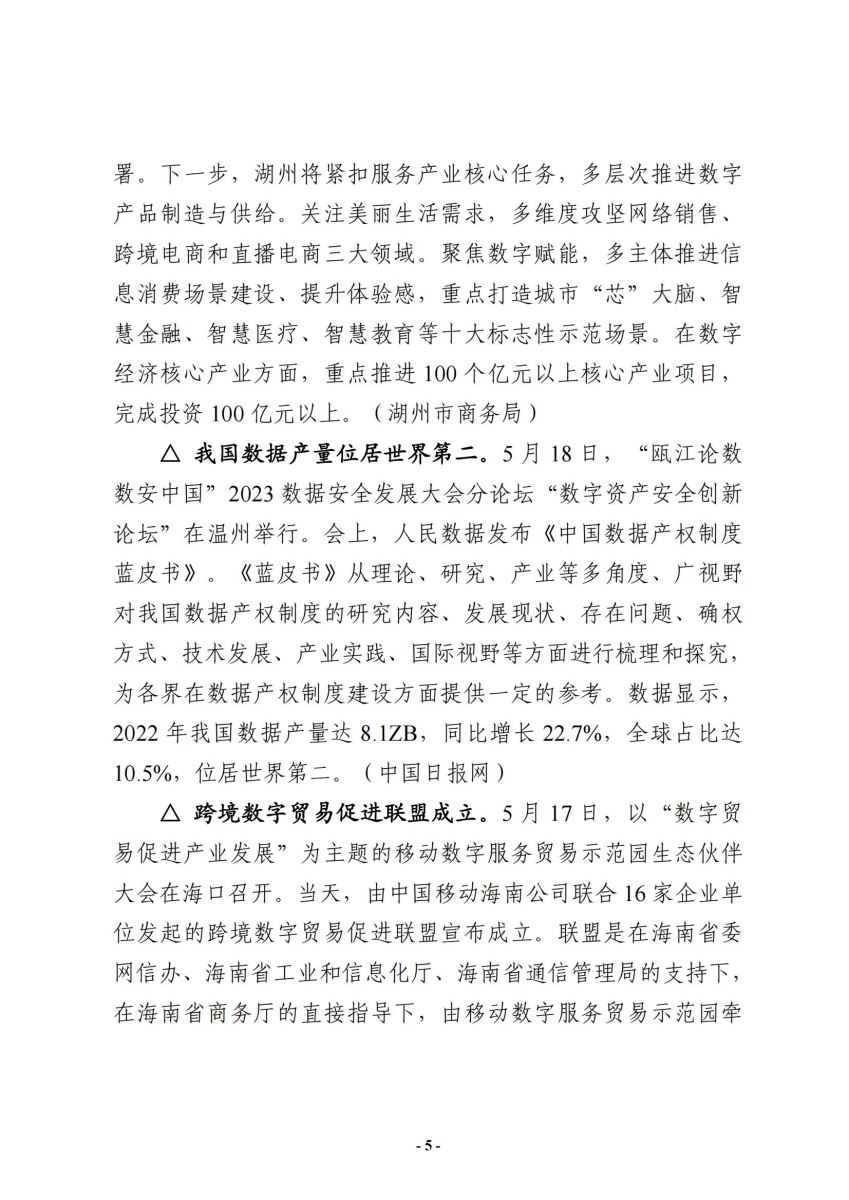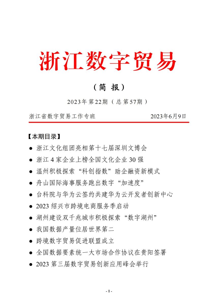 浙江数字贸易简报(第五十七期) 时间: 2023/6/19 11:02:14 浏览量: |