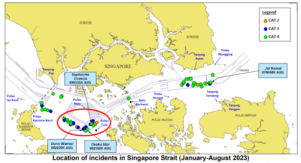 新加坡海峡为世界上最繁忙和最重要的水道之一,图自外媒 亚洲反海盗信息共享中心在报告中提醒海事界,新加坡海峡区域持续发生海上抢劫事件。报告指出,在3天内(8月7日至9日),行驶在新加坡海峡的散装货轮报告了4起抢劫事件:7日的事件发生在印尼的丹戎通东地区附近,8日和9日的3起事件发生在印尼库拉岛附近的菲利普海峡。报告称,在所有4起事件中,发动机备件均被盗,有1起抢劫者携带刀具,但所有船员都未受伤。 另据路透社11日报道,由新加坡海军主办的“区域设施信息融合中心”(IFC)指出,在近日发生的多起事件中,有一艘被劫船只悬挂塞浦路斯国旗,两艘船只悬挂利比里亚国旗。该机构表示,这三艘船只“在黑暗的几个小时内接连被抢劫”。新加坡区域设施信息融合中心提醒附近船只谨慎行事,同时表示,“大多数抢劫事件涉及散货船,以及干舷低、航行速度慢的拖船和驳船”。该机构补充说,根据距离、时间间隔和涉及的人数,所有抢劫事件都可能由同一组盗贼实施。