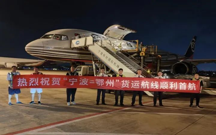 宁波往返鄂州全货机首航,航空货运转运中心项目启动 8月15日清晨,宁波往返鄂州全货机航线正式开通。该全货机航线由顺丰航空执飞,最大商载达25吨,航线计划每周执飞5班,首班航班主要运输服装鞋帽、工业配件等普货。