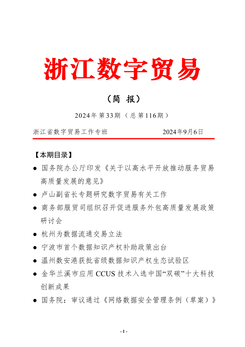 浙江数字贸易简报(第一百一十六期) 时间: 2024/9/9 10:02:11 浏览量: |