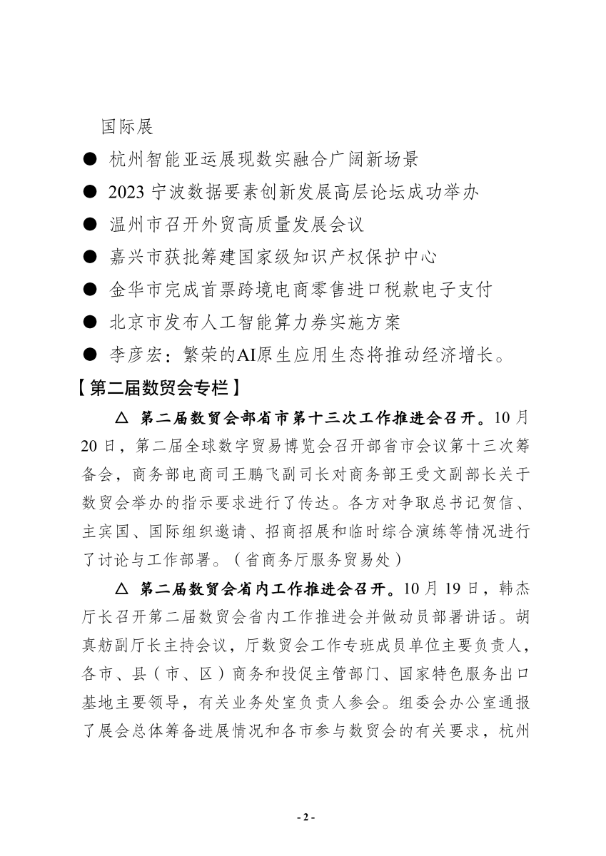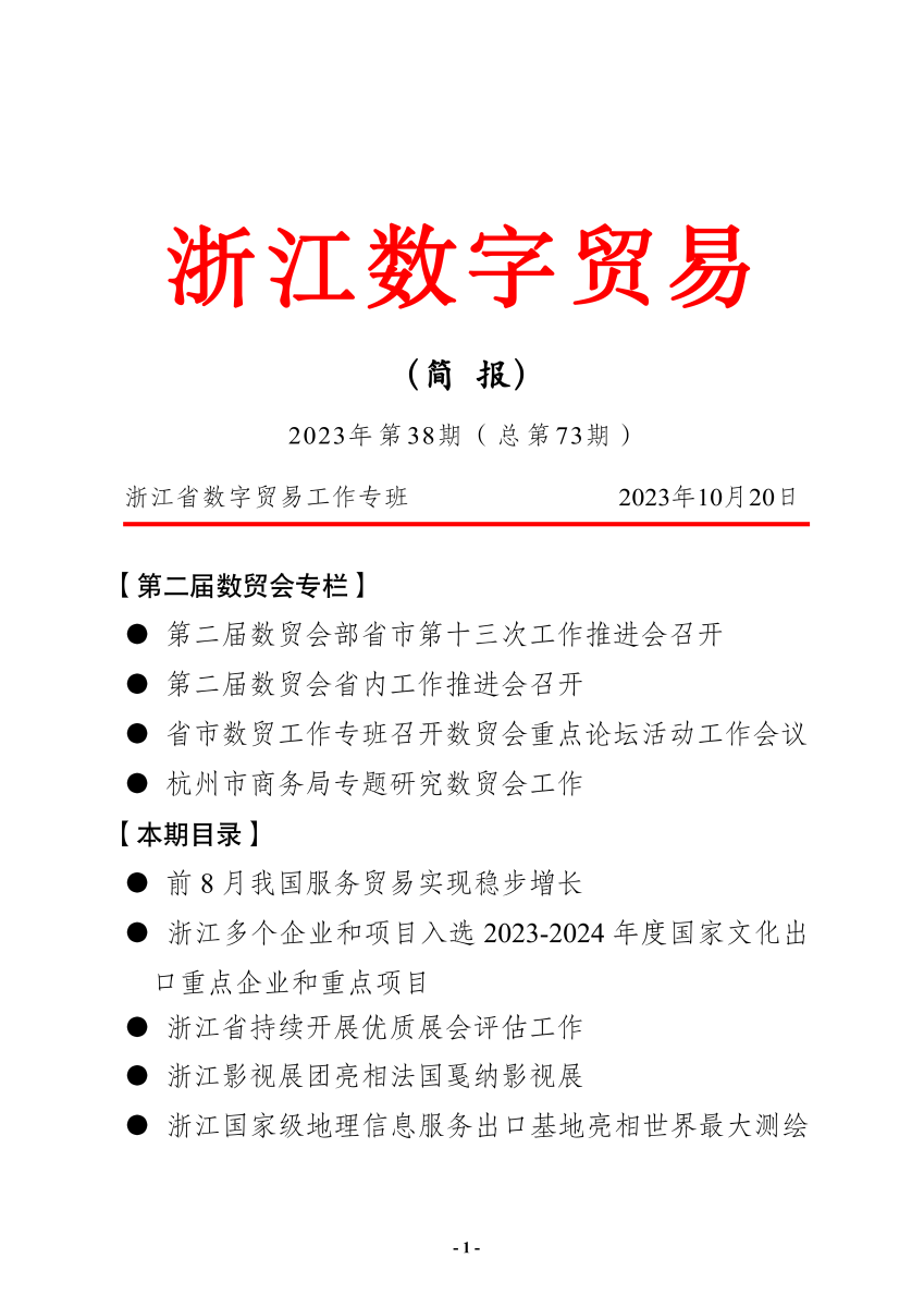 浙江数字贸易简报(第七十三期) 时间: 2023/11/3 16:36:06 浏览量: |