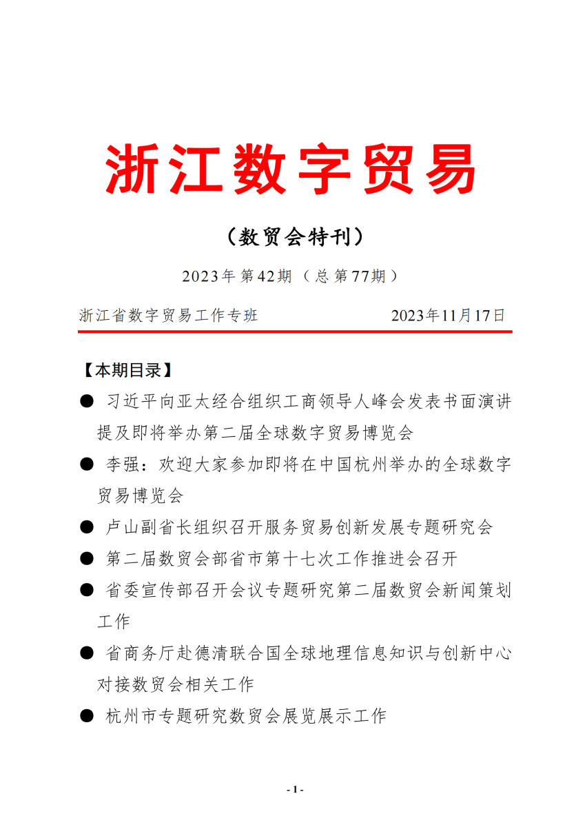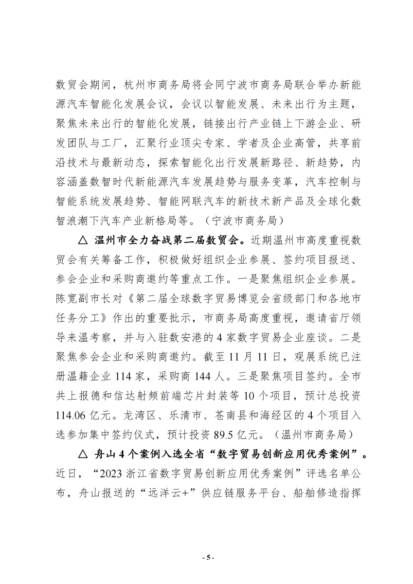 浙江数字贸易简报(第七十七期) 时间: 2023/11/20 9:22:09 浏览量: |
