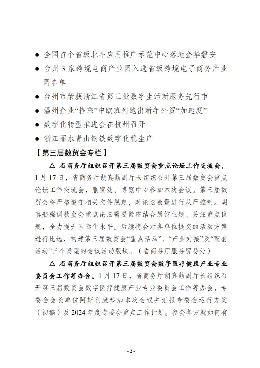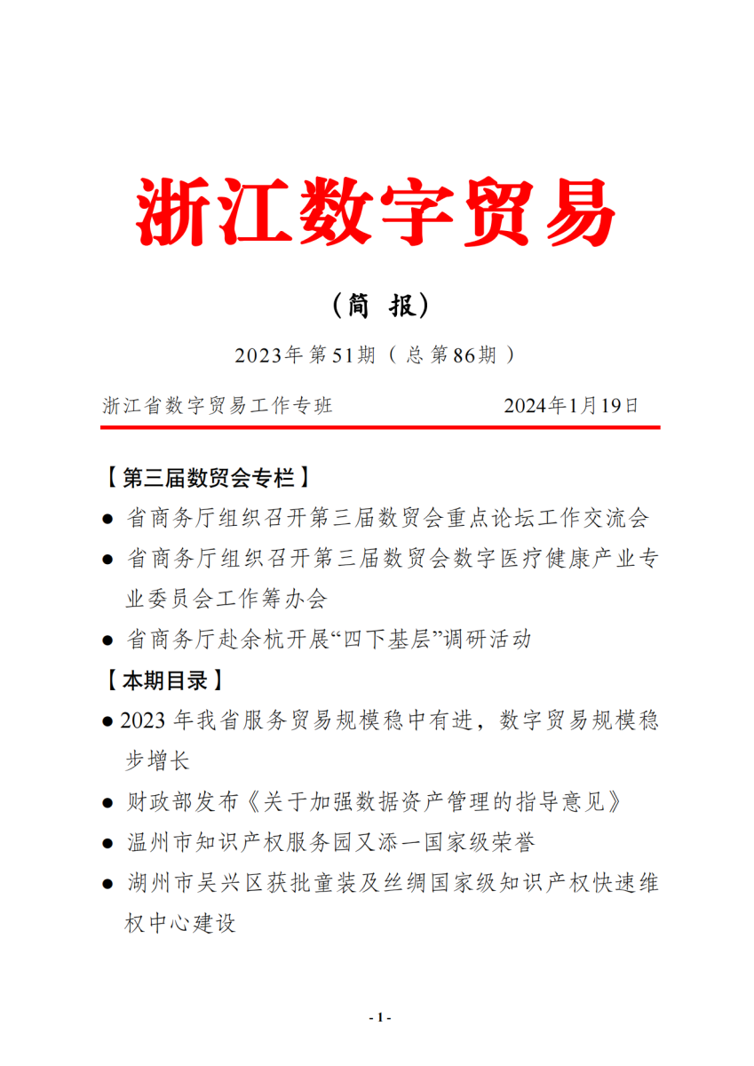 浙江数字贸易简报(第八十六期) 时间: 2024/1/22 9:05:42 浏览量: |