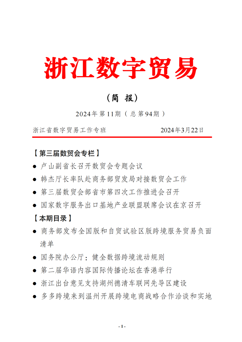 浙江数字贸易简报(第九十四期) 时间: 2024/3/25 12:12:17 浏览量:  |