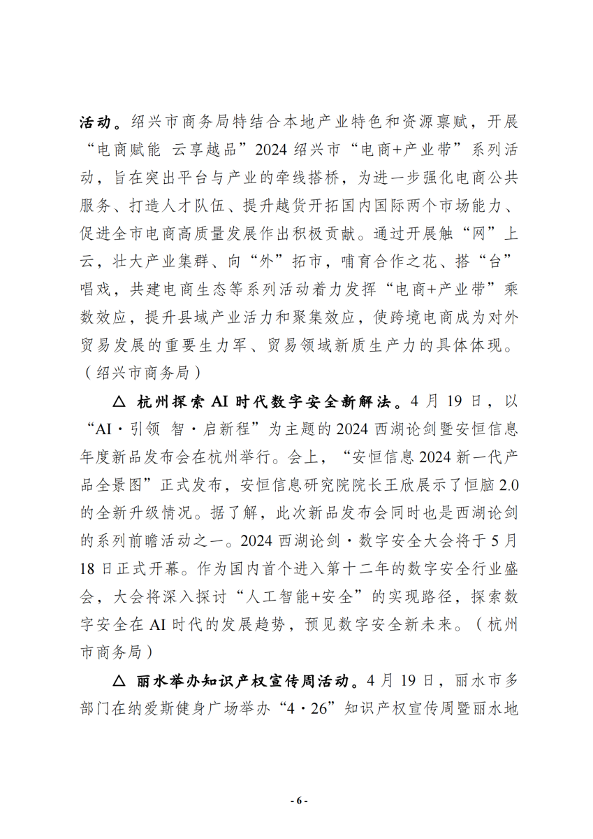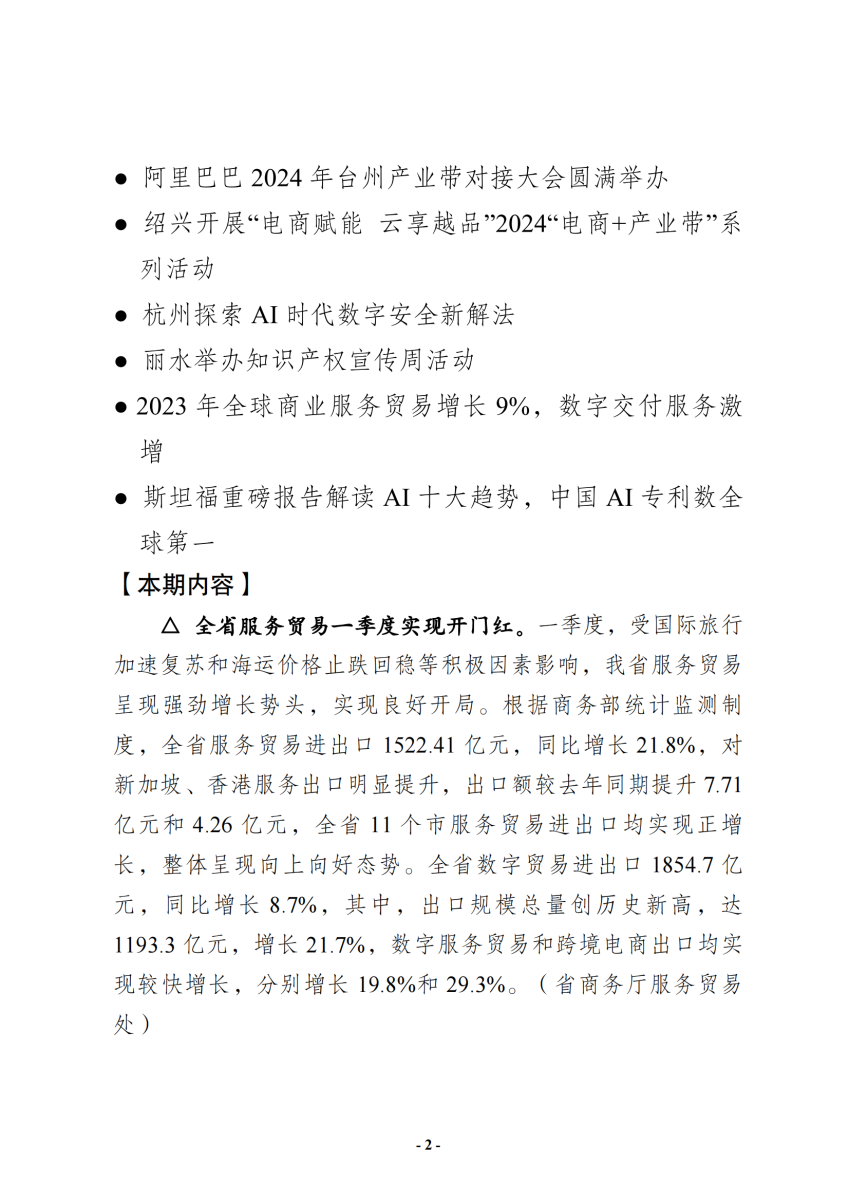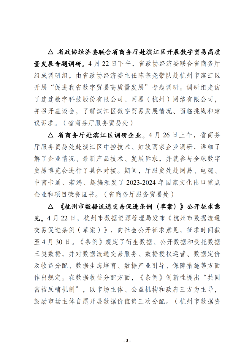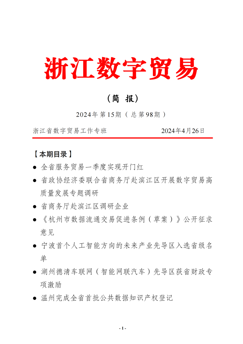 浙江数字贸易简报(第九十八期) 时间: 2024/4/30 10:15:13 浏览量: |
