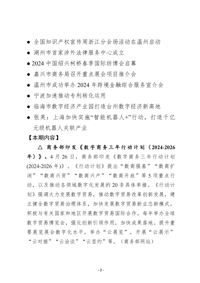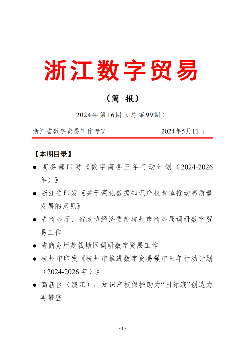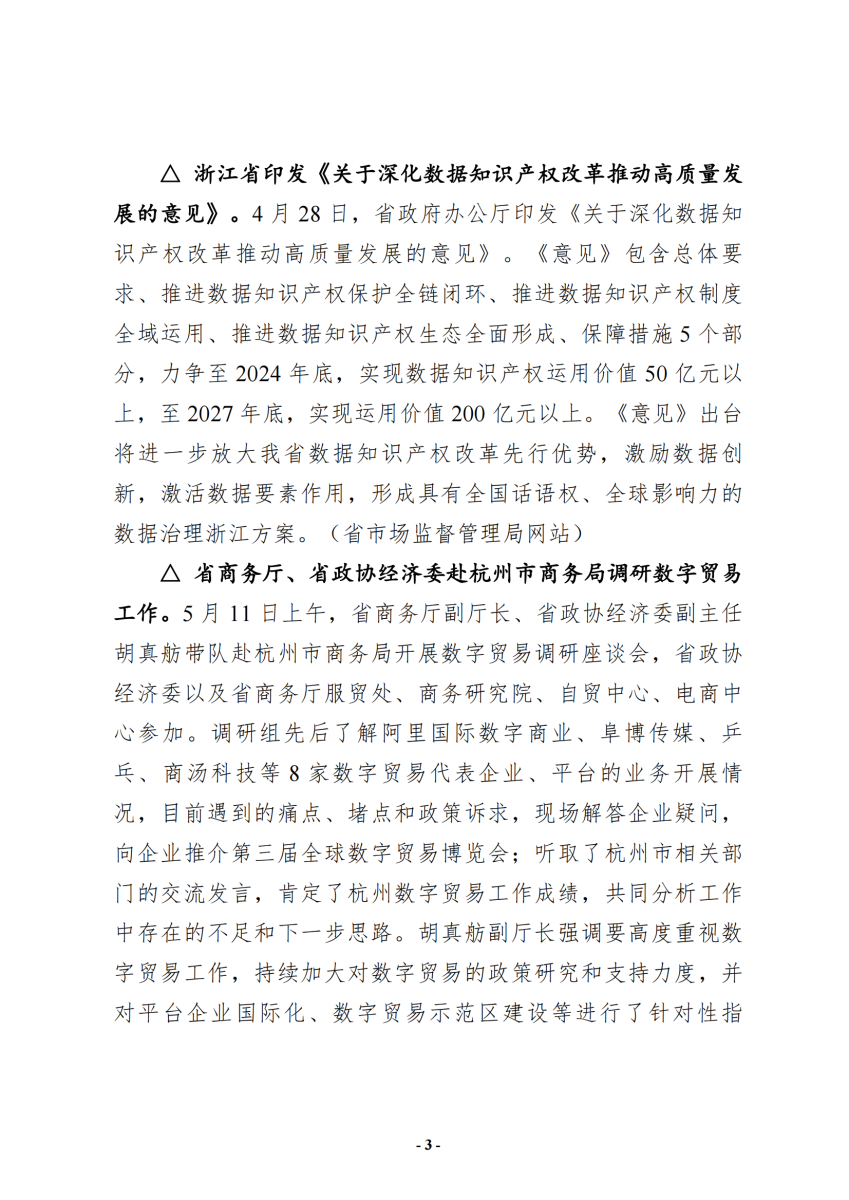 浙江数字贸易简报(第九十九期) 时间: 2024/5/14 15:42:51 浏览量: |