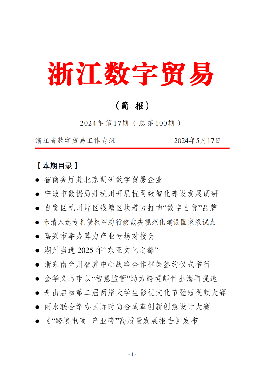 浙江数字贸易简报(第一百期) 时间: 2024/5/29 17:05:44 浏览量: |
