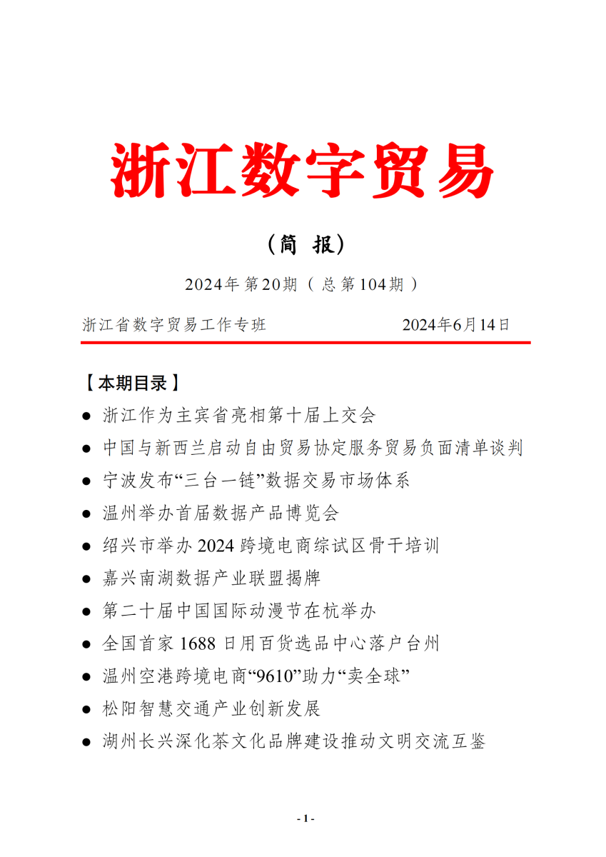 浙江数字贸易简报(第一百零四期) 时间: 2024/7/3 9:00:42 浏览量: |