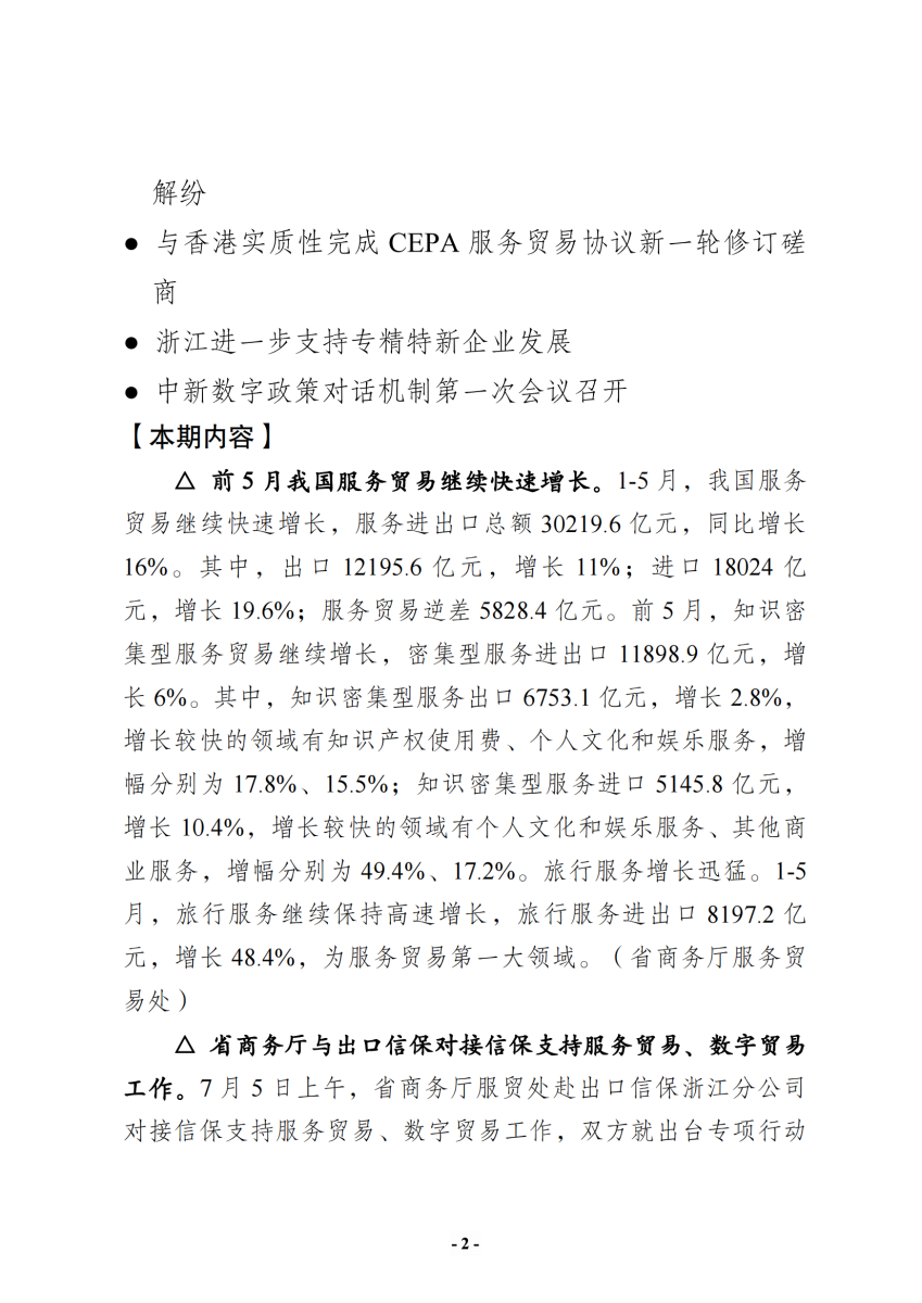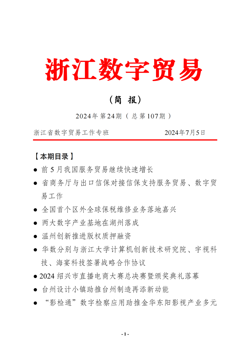 浙江数字贸易简报(第一百零七期) 时间: 2024/7/11 17:23:19 浏览量: |