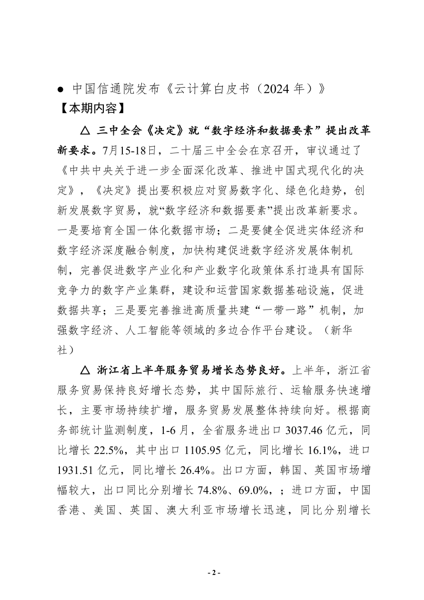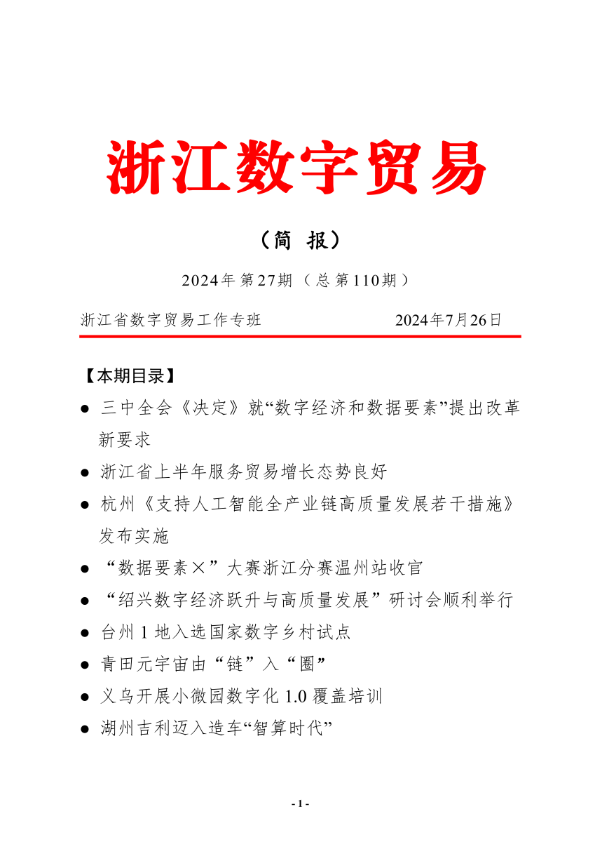 浙江数字贸易简报(第一百一十期) 时间: 2024/7/31 10:02:32 浏览量: |