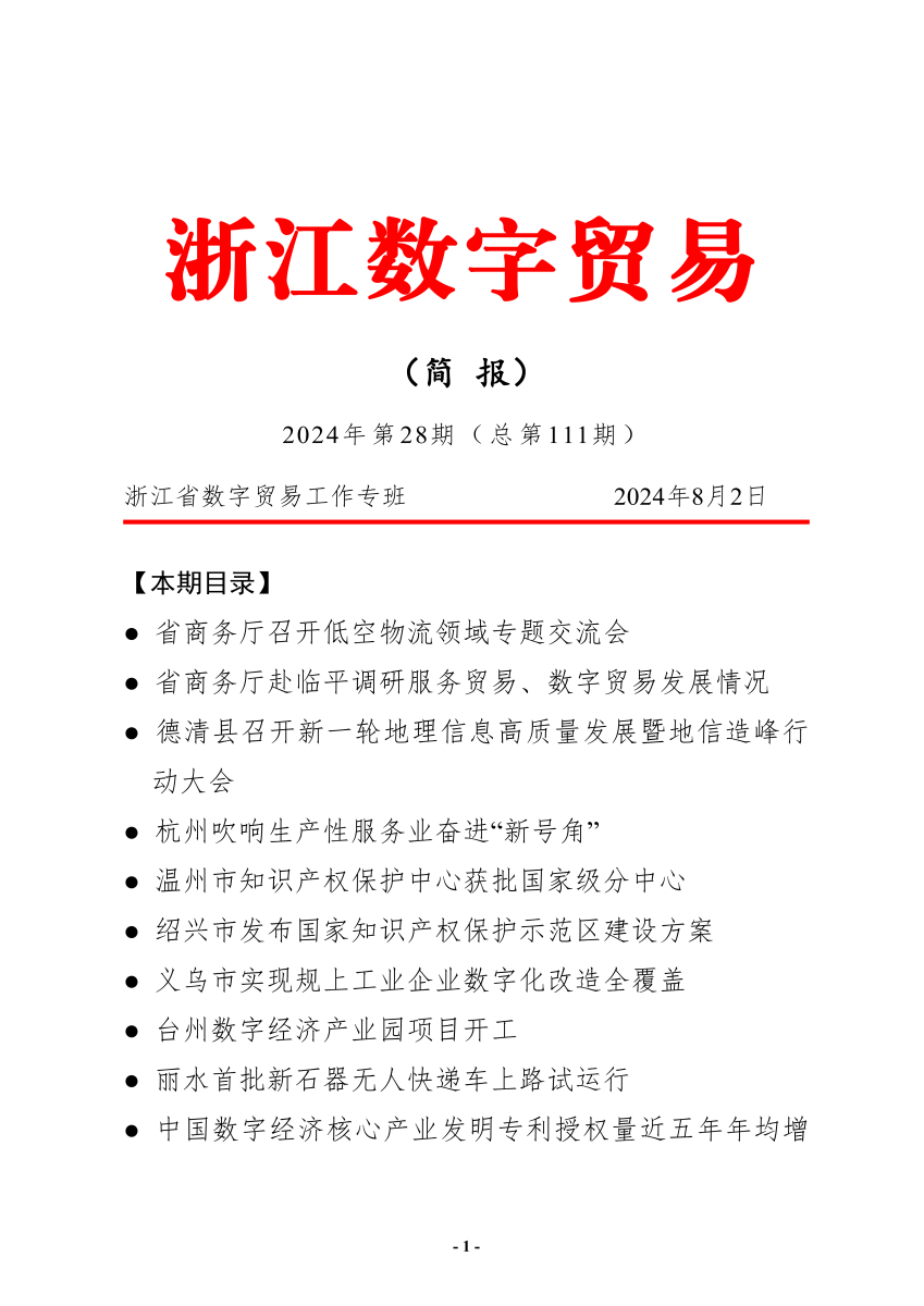 浙江数字贸易简报(第一百一十一期) 时间: 2024/8/5 8:35:59 浏览量: |