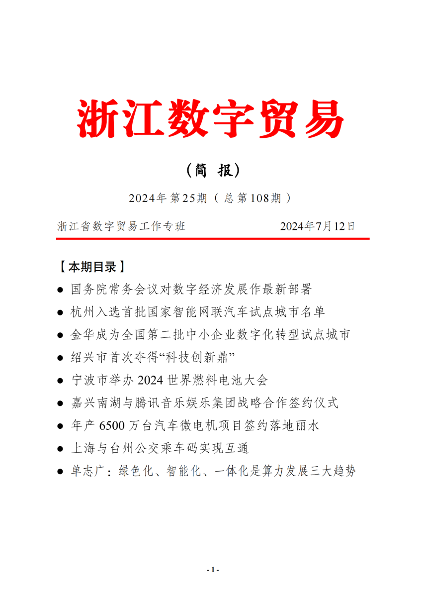 浙江数字贸易简报(第一百零八期) 时间: 2024/7/15 8:35:18 浏览量: |