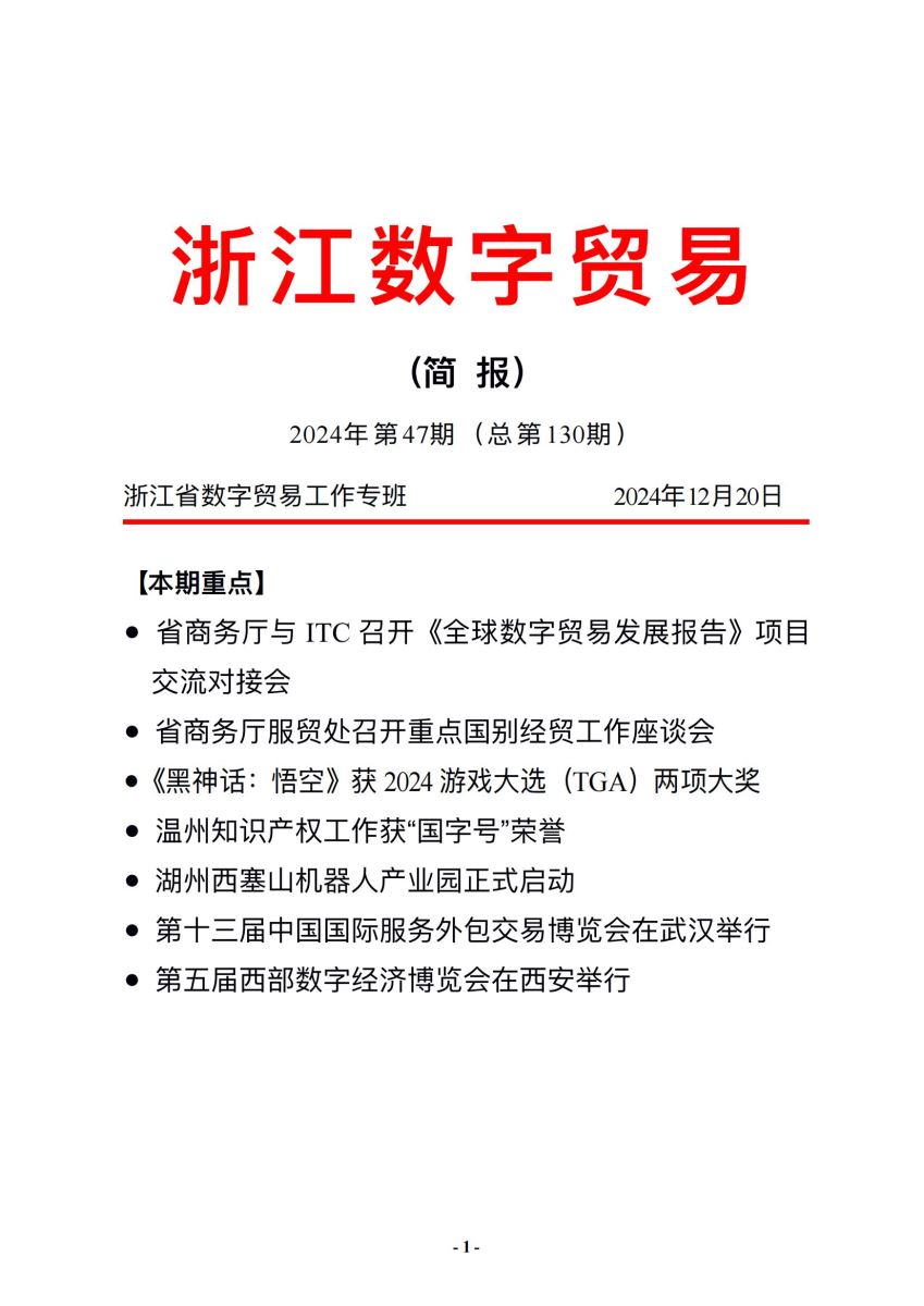 浙江数字贸易简报(第一百三十期) 时间: 2024/12/23 15:58:56 浏览量: |